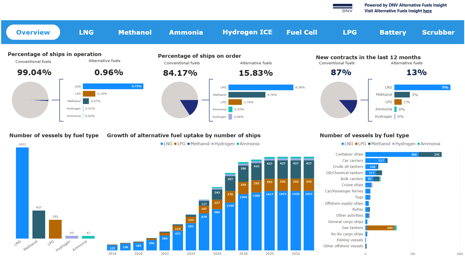 The latest developments in shipping’s uptake of alternative fuel provided by DNV’s Alternative Fuels Insight (AFI) platform.